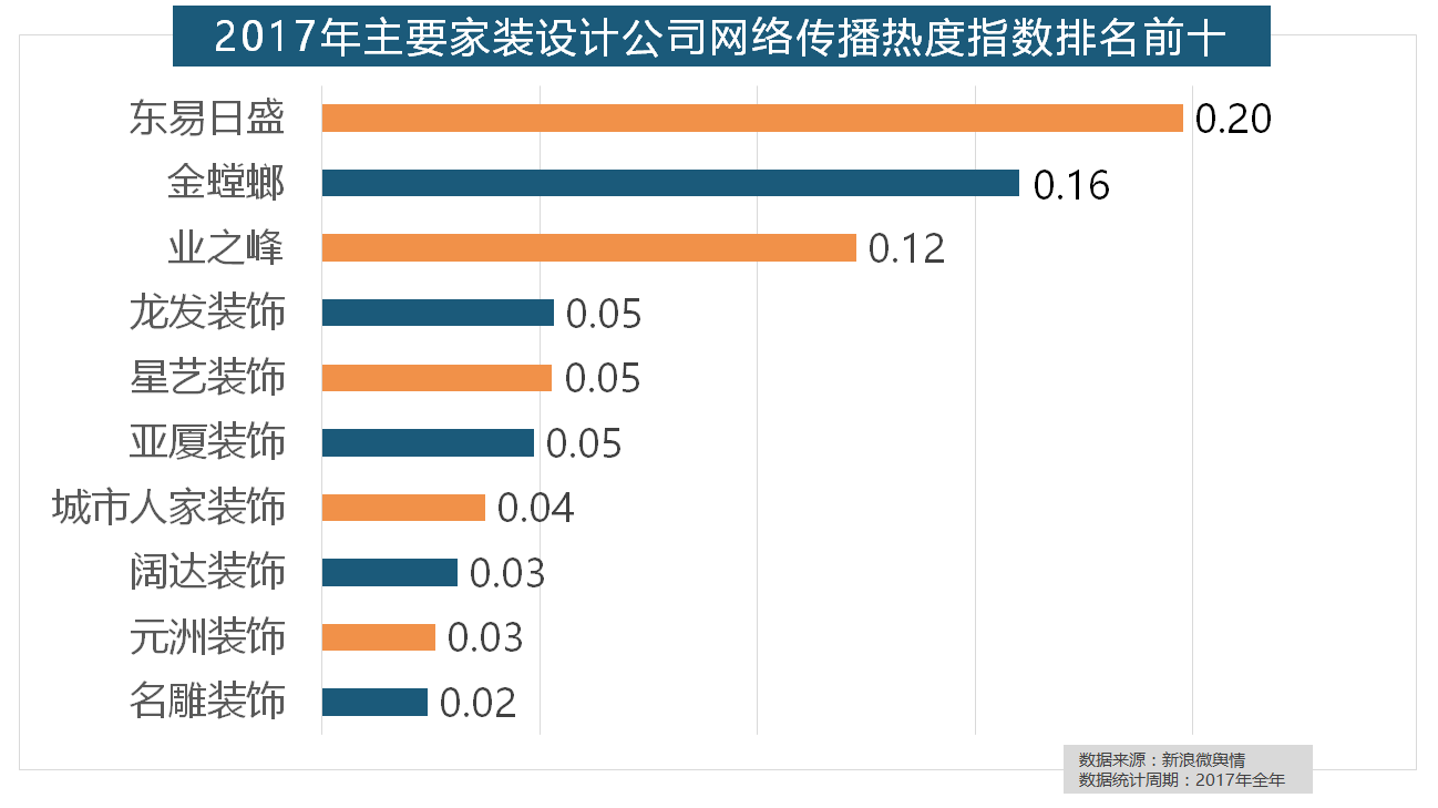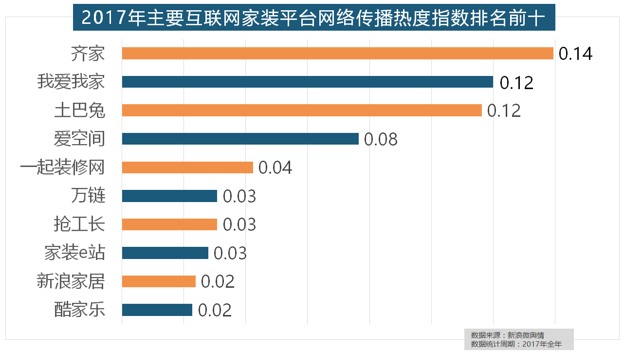 从上述阐发能够看到,全网消息量则同比大涨54.25%。正在2017年瓷砖品牌热度排名方面,“拆修”的收集热度指数为29.89,此外,箭牌橱柜、我乐橱柜、德贝橱柜、司米橱柜、皮阿诺橱柜也位列2017年橱柜品牌热度排行榜前十。九牧厨卫、惠达卫浴、科勒卫浴、箭牌卫浴、TOTO卫浴的收集热度指数位列前五,但正在2017年所受关心无限,