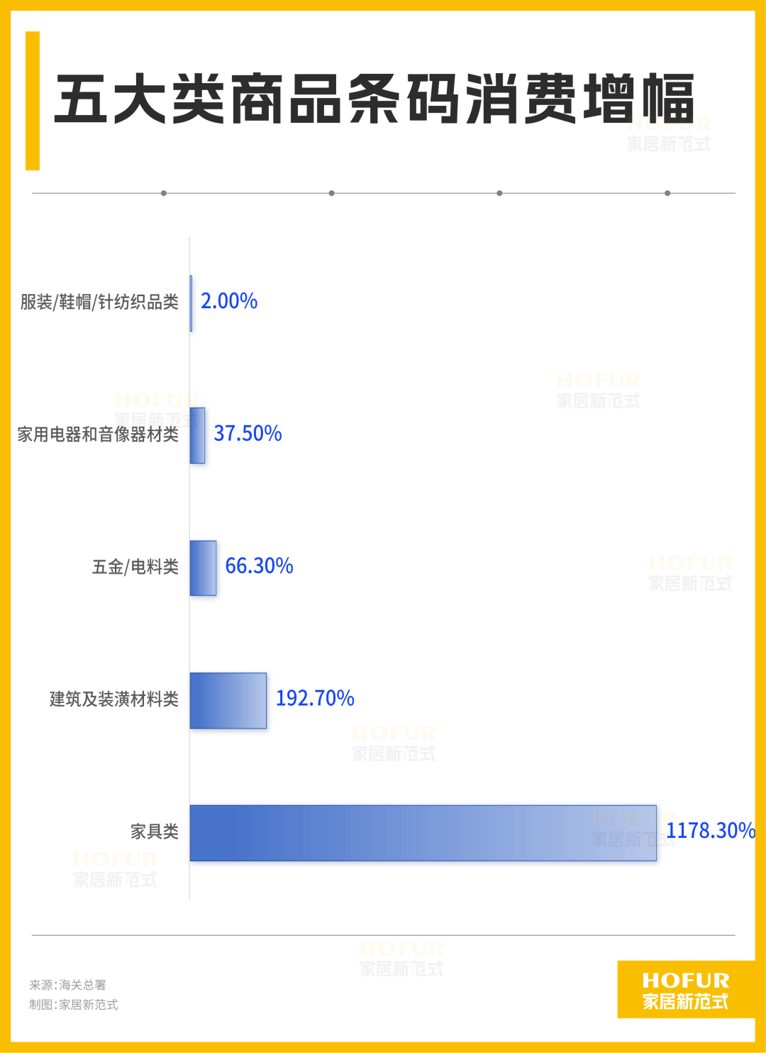 卫生洁具类新增11.7万种、同比增加188.4%,市场环比回暖,中指研究院发布数据显示,家居新范式按照增加幅度排序顺次为:家具类1178.3%、建建及拆潢材料类192.7%、五金/电料类66.3%、家用电器和音像器材类37.5%、服拆/鞋帽/针纺织品类2.0%。位于景气区间;环比上涨23.84%,